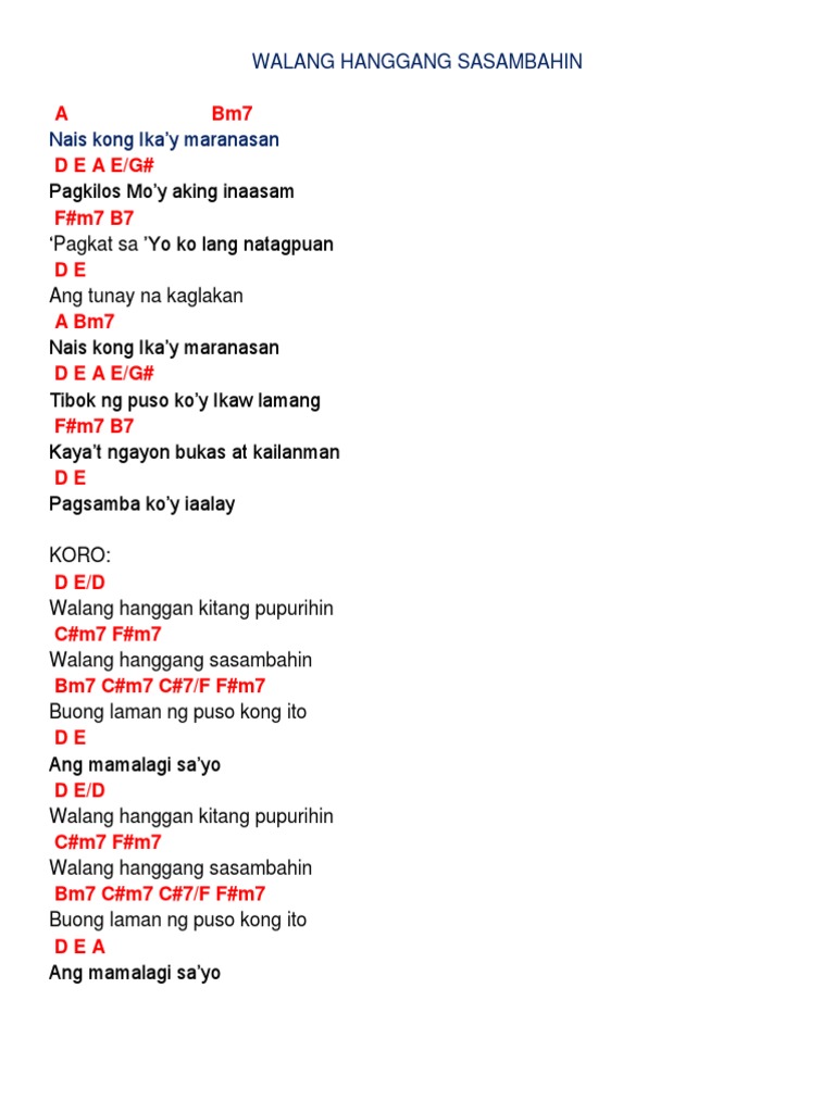 25072018 Key of A major Tuning. Akala ko ikaw ay akin Totoo sa aking paningin Ngunit nang ikaw ay yakapin Naglalaho sa dilim Ninais kong mapalapit sayo Ninais kong malaman mo Ang mga paghihirap ko Balewala lang sayo. A-pause A pause A A E Akala ko ikaw ay akin Fm D Totoo sa aking paningin A E Ngunit nang ikaw ay yakapin D E Naglalaho sa dilim A E Ninais kong mapalapit sa yo Fm D Ninais kong malaman mo A E Ang mga paghihirap ko D E Balewala lang sa yo Refrain Fm Cm Ikaw ay aking minahal D A Kasama ko ang Maykapal A E Ngunit ako palay naging isang hangal D.